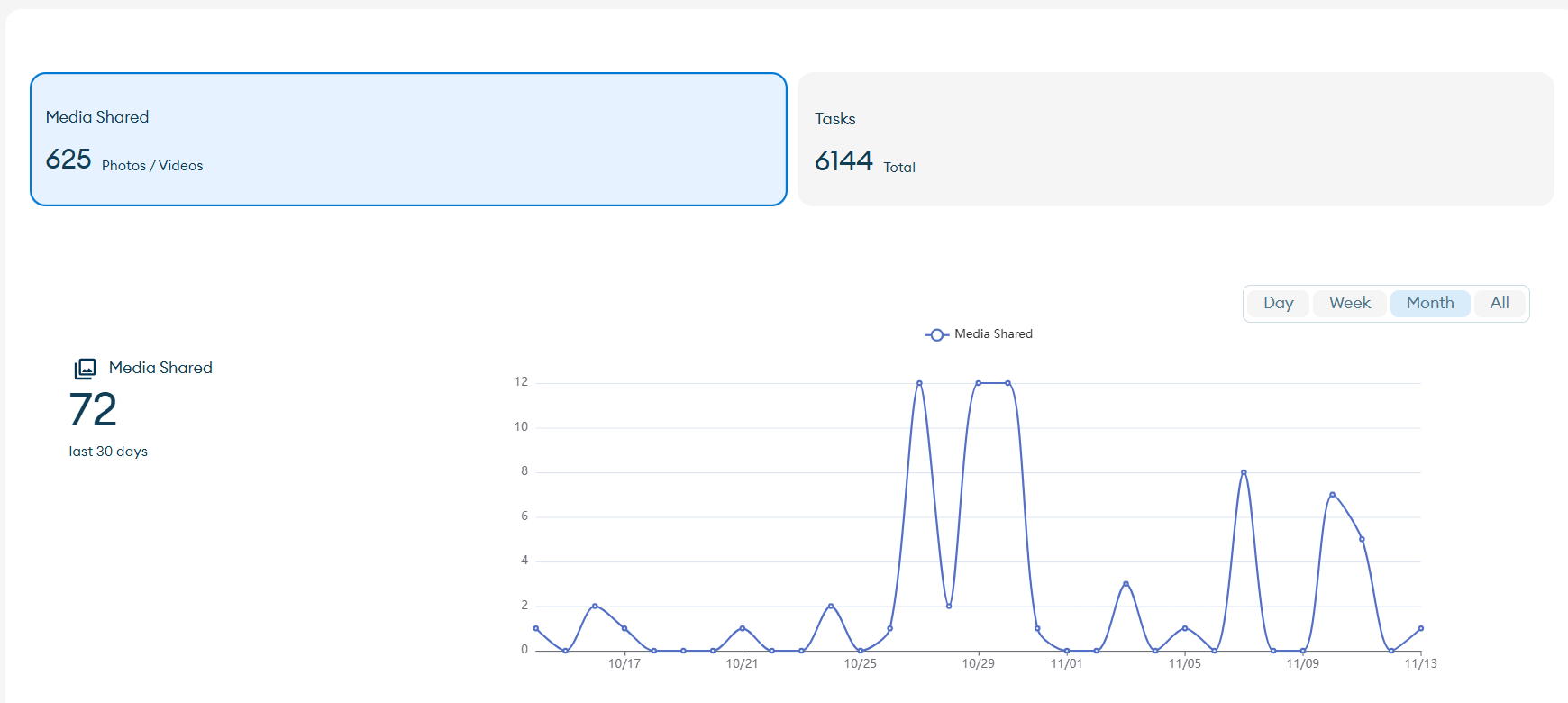 Users can toggle between viewing statistics at the Organization level or for a specific Provider