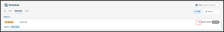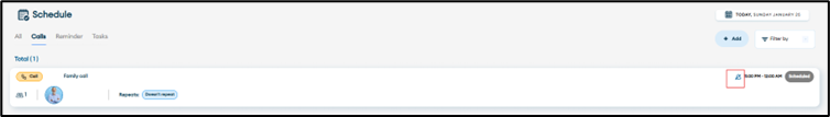 4. Calls and Reminders created with “No Reminder” option will show the silent bell icon.