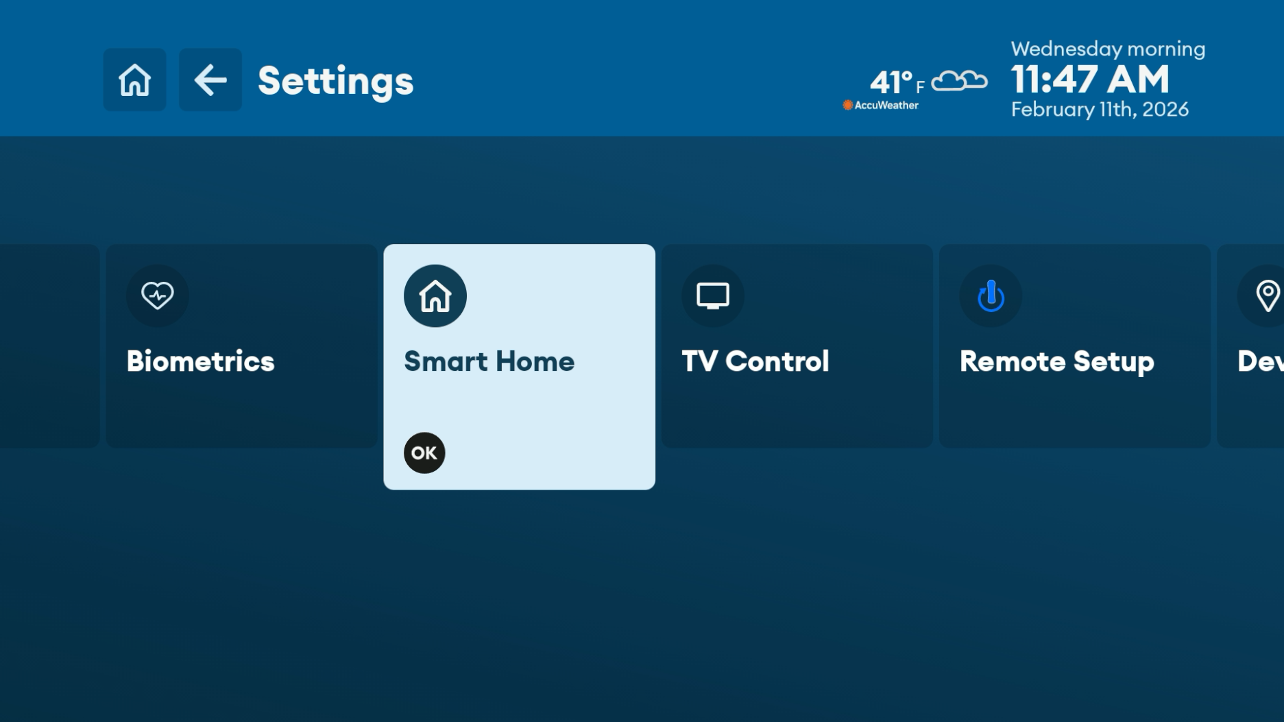 - The Smart Home setup now supports the new Shelly and Telehealth Sensors LLC supported device pairing over Bluetooth in addition to the EM200 Environmental sensors previously supported.