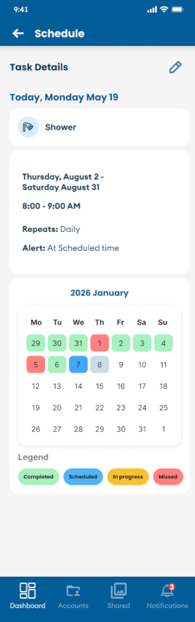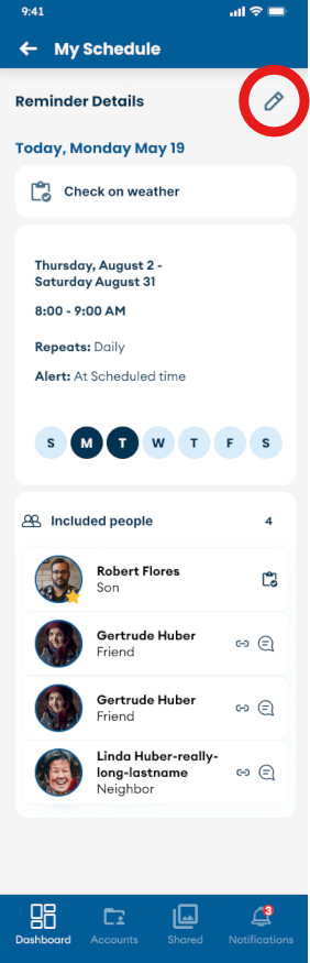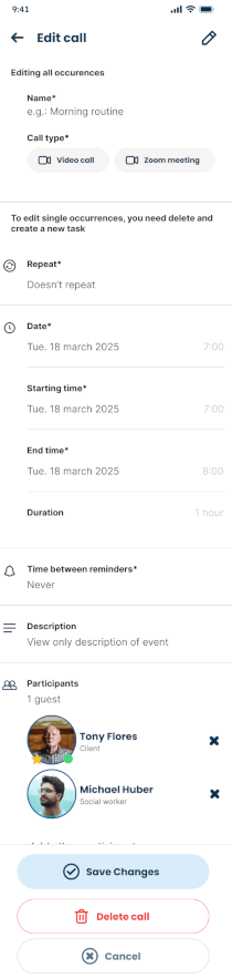 - View calls, reminders and tasks from the schedule page by clicking on an event to view the details page:
