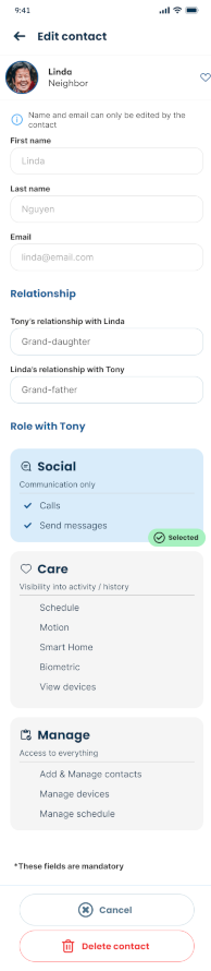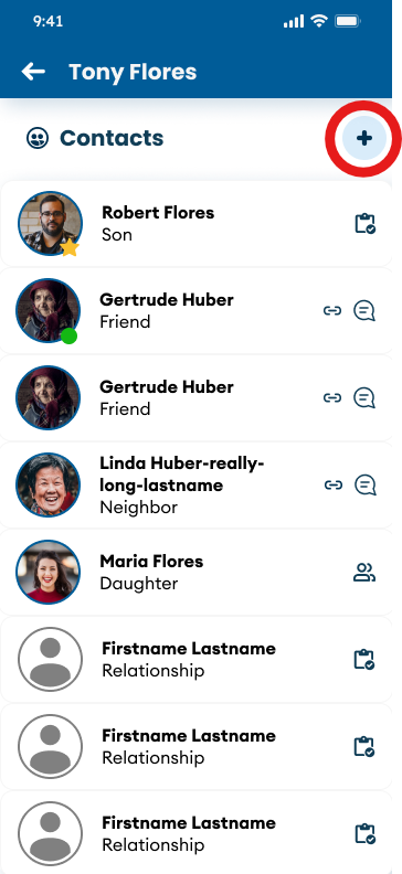 - Linked Accounts are now shown on the Contacts page with a link icon and the status of the associated Wellness Hub on the contacts profile photo (green dot = online, gray dot = offline)
